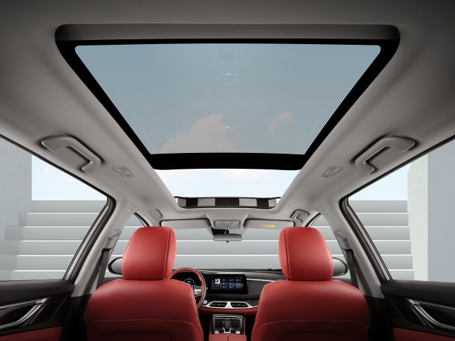Trapă panoramică ce oferă lumină naturală și un sentiment de spațiu deschis, îmbunătățind atmosfera în interiorul vehiculului.