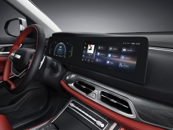 Tehnologie modernă cu ecran tactil pentru divertisment și navigație, facilitând accesul la media și diverse informații.